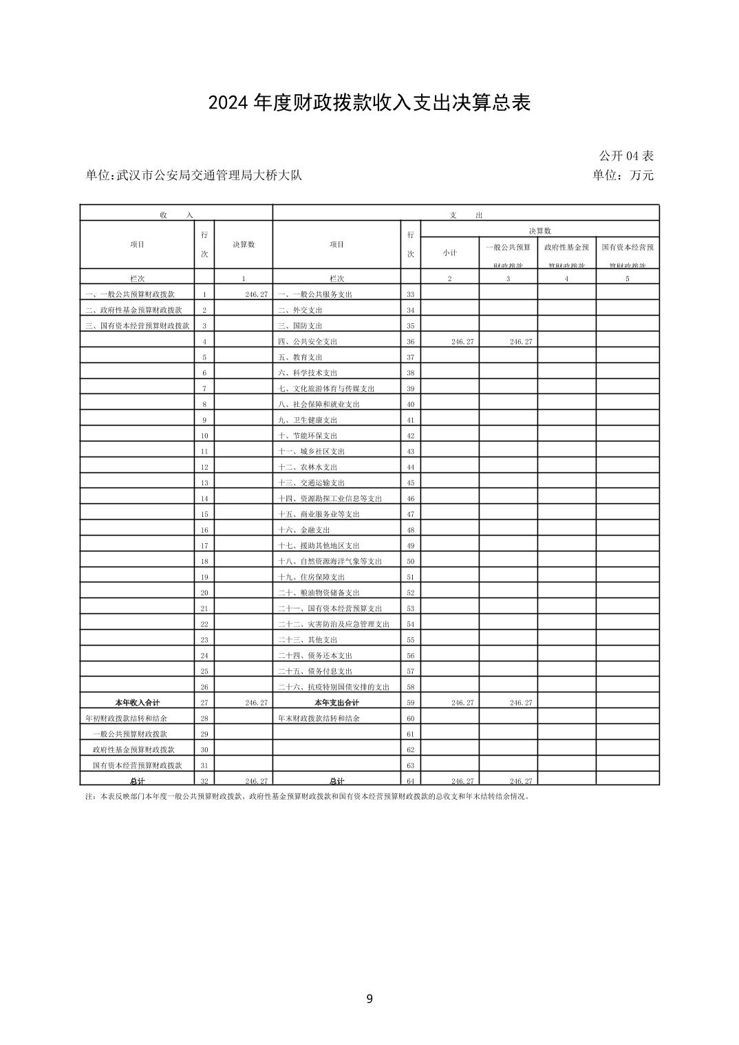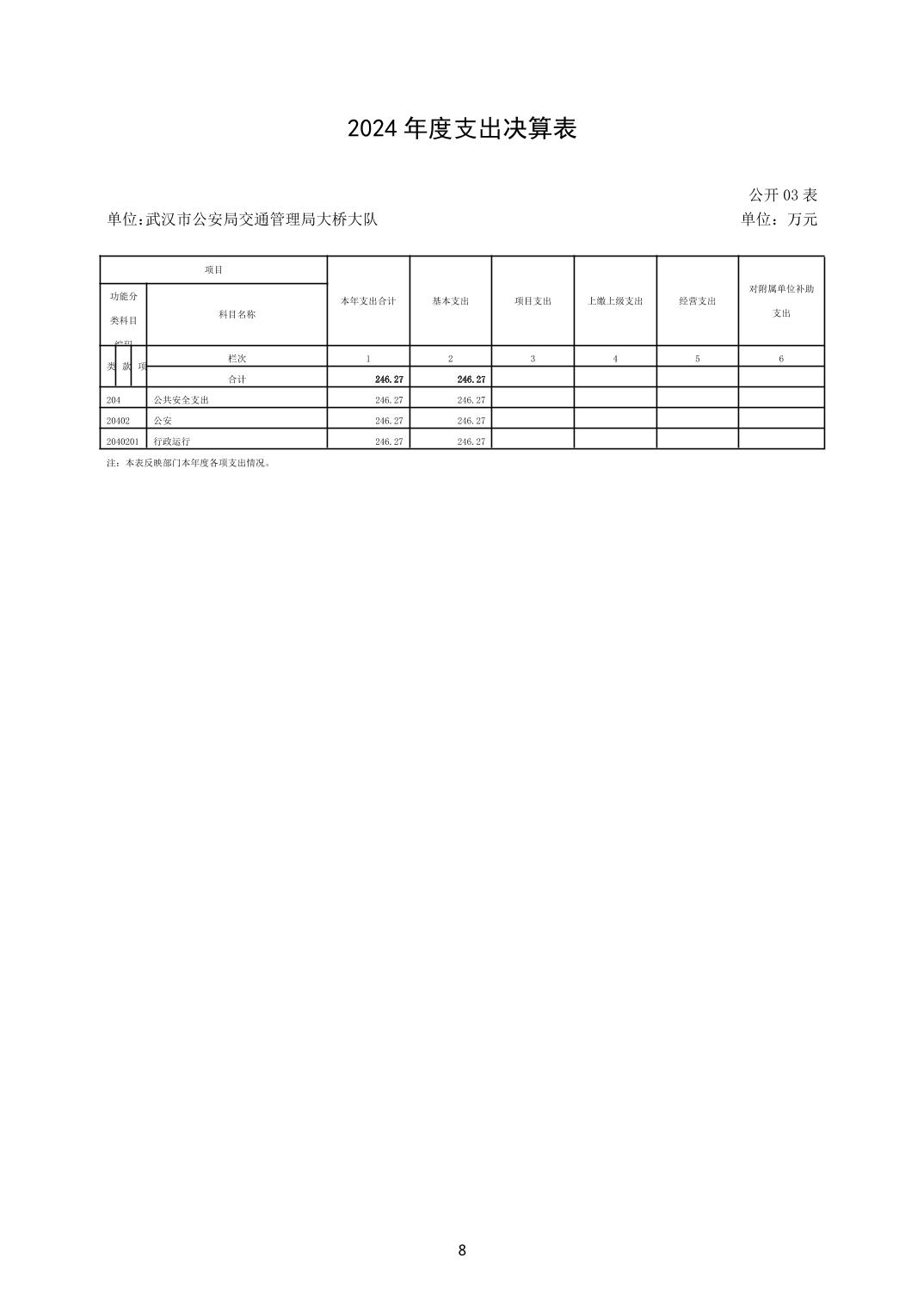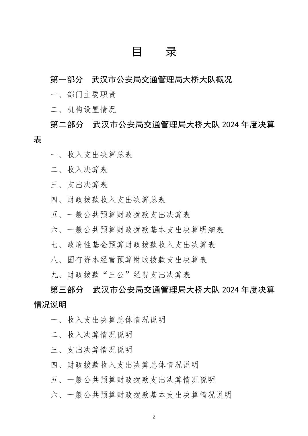 武汉市公安局交通管理局大桥大队2024年度决算公开