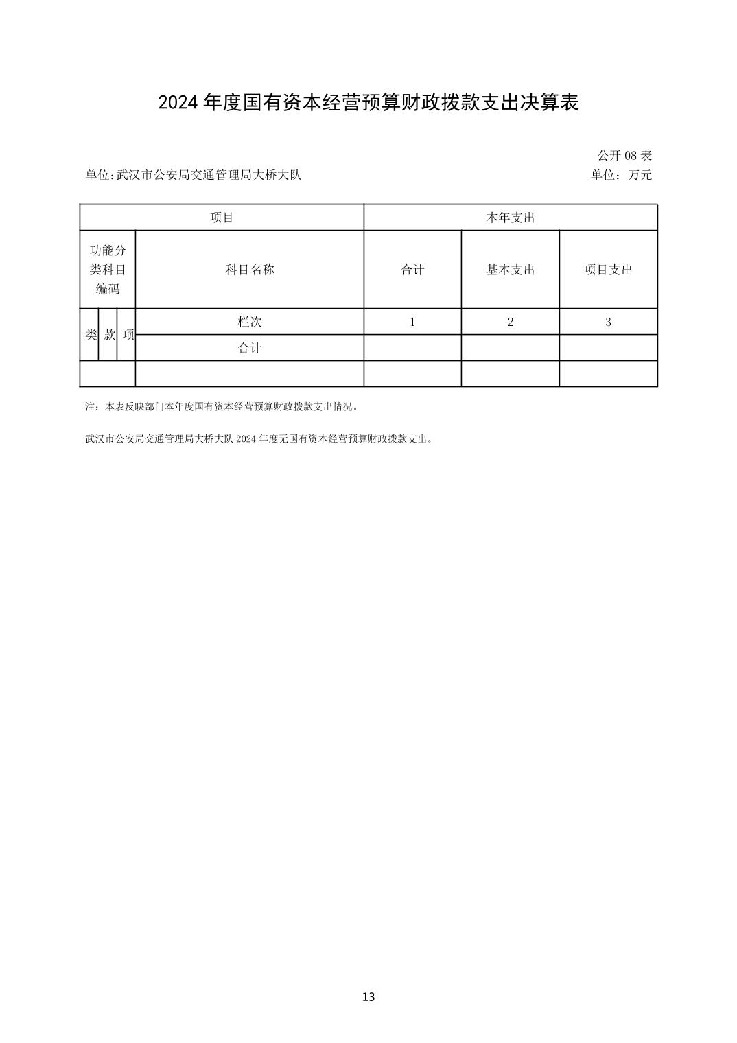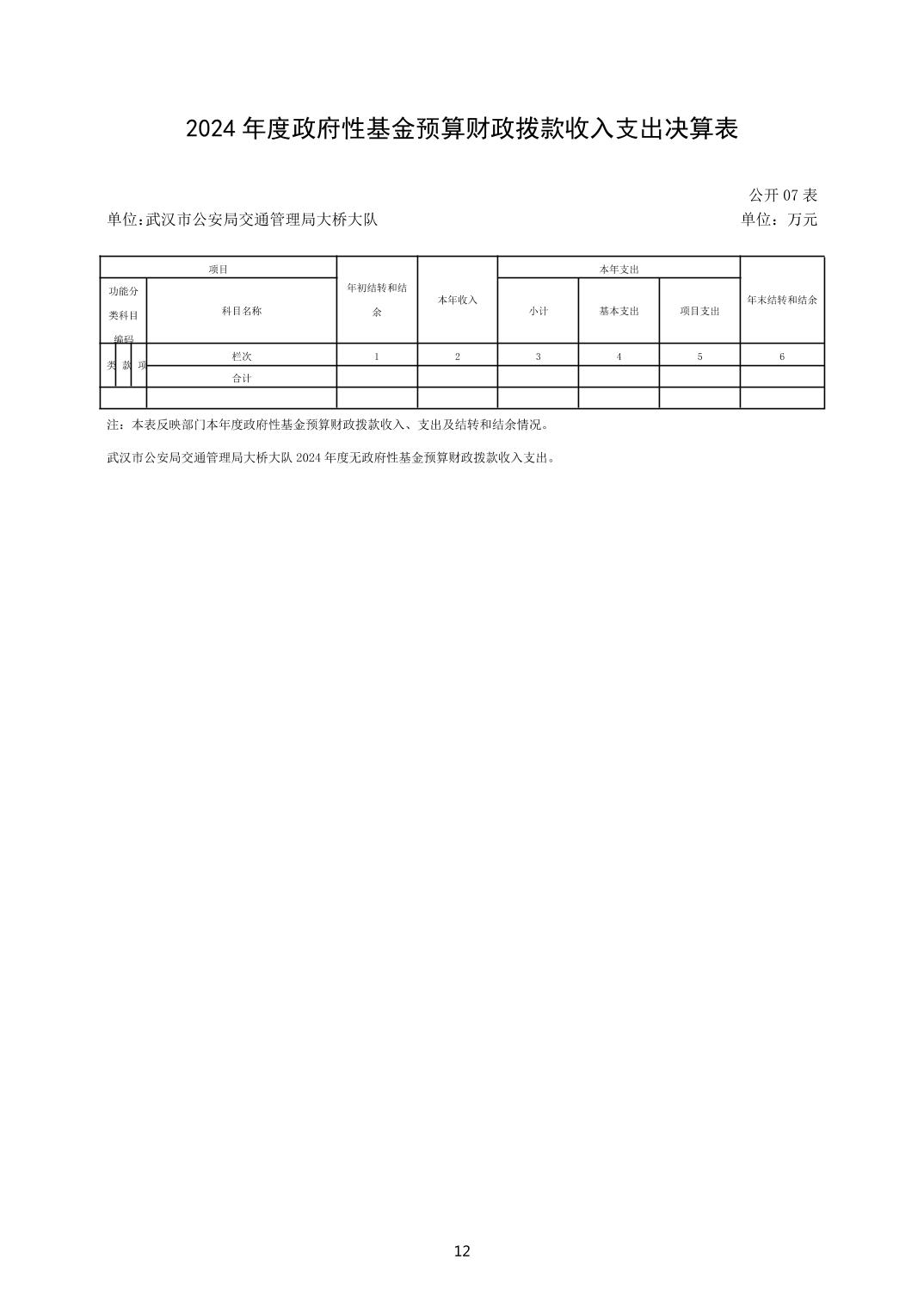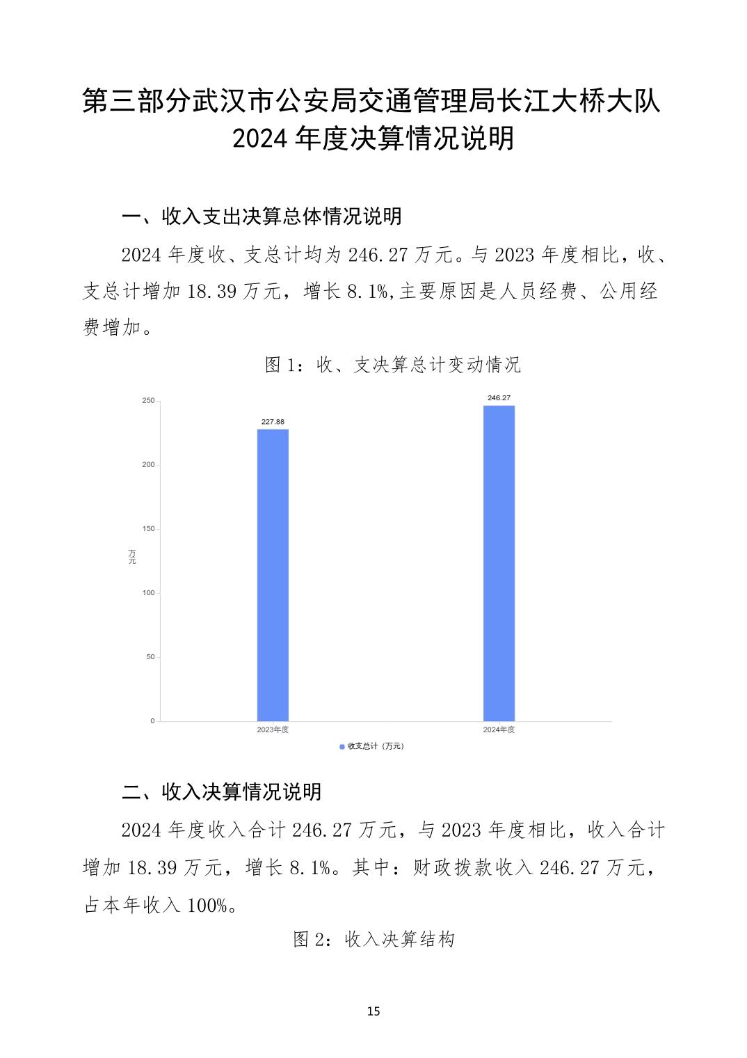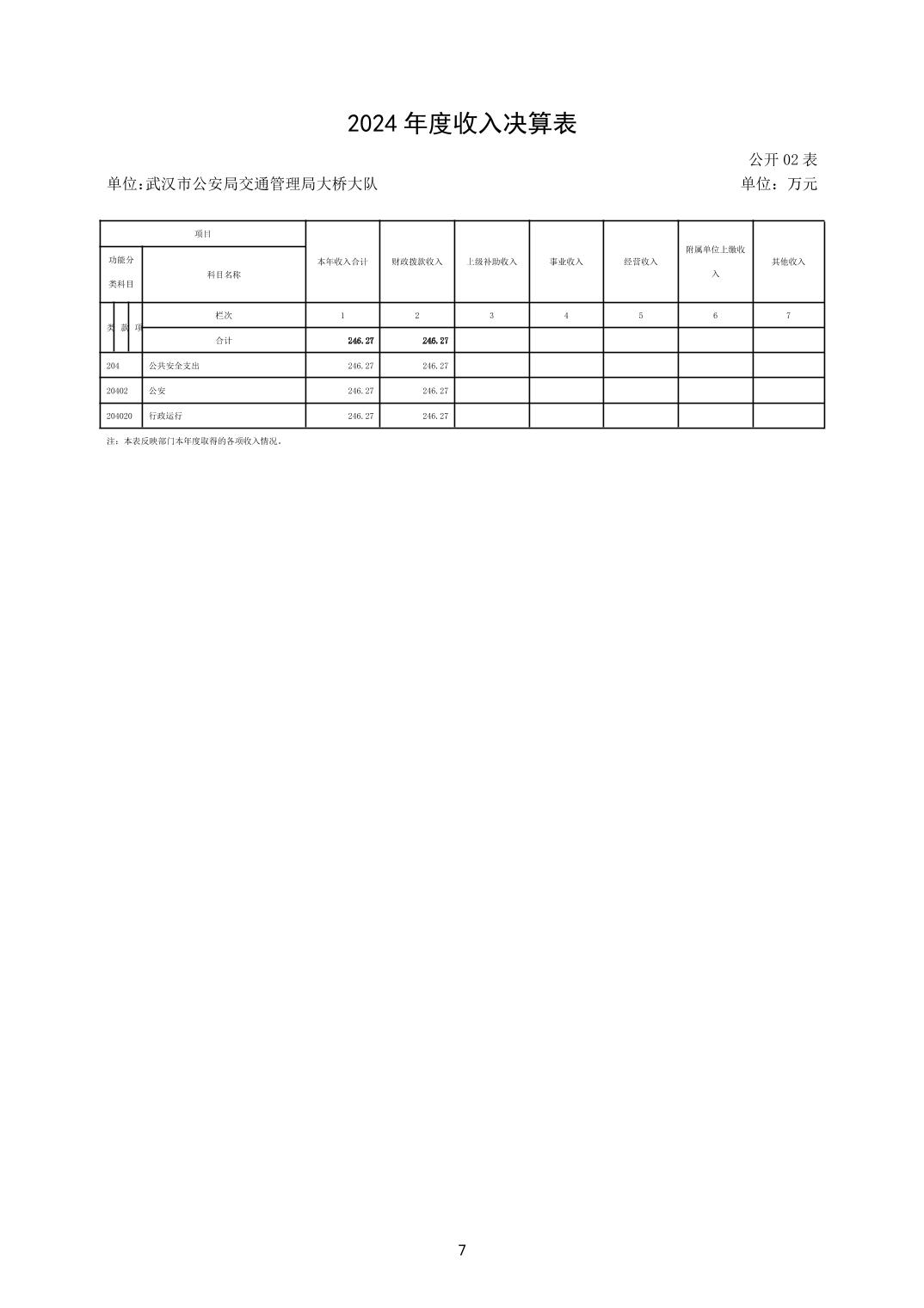 武汉市公安局交通管理局大桥大队2024年度决算公开
