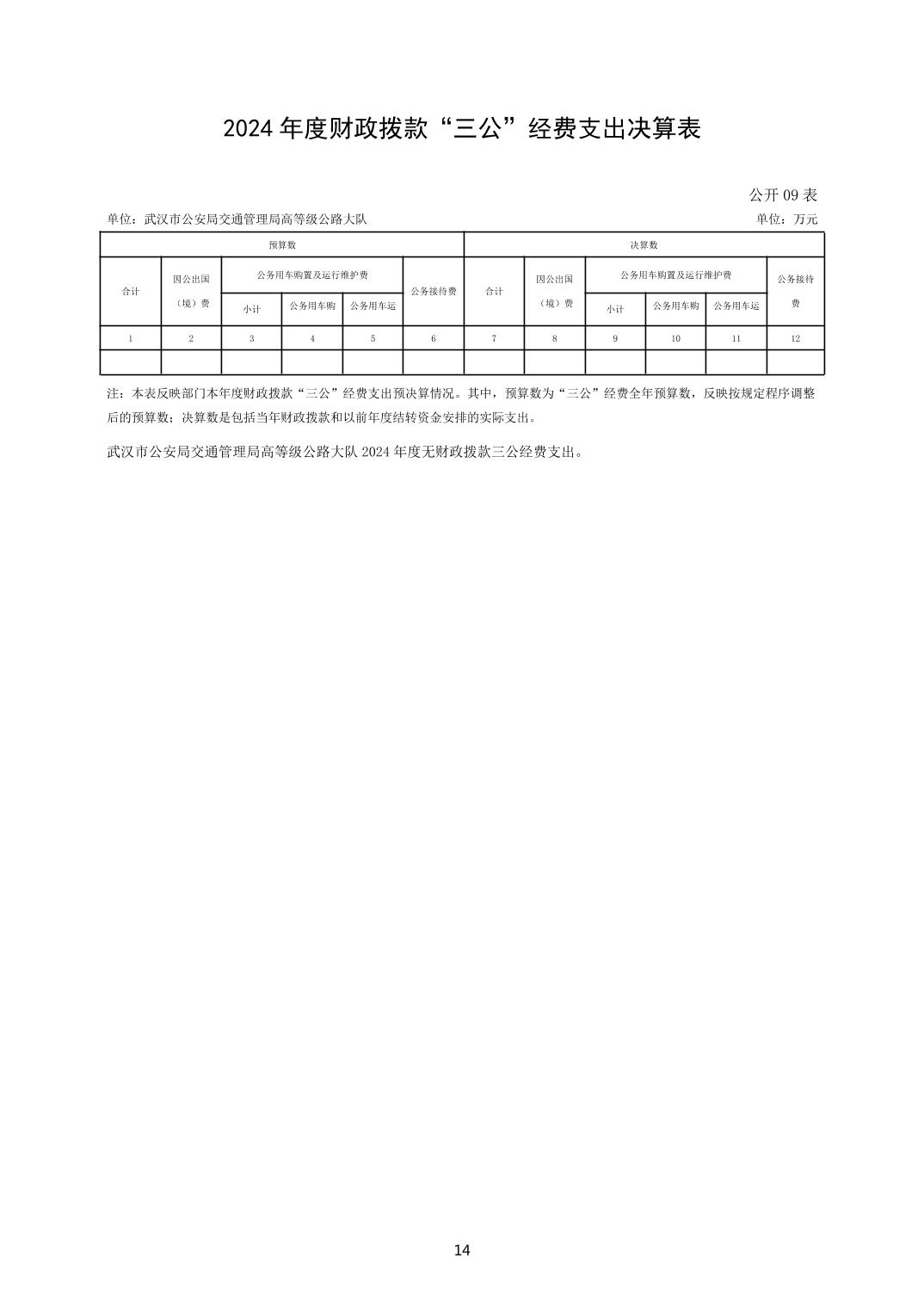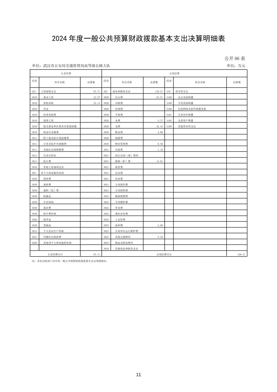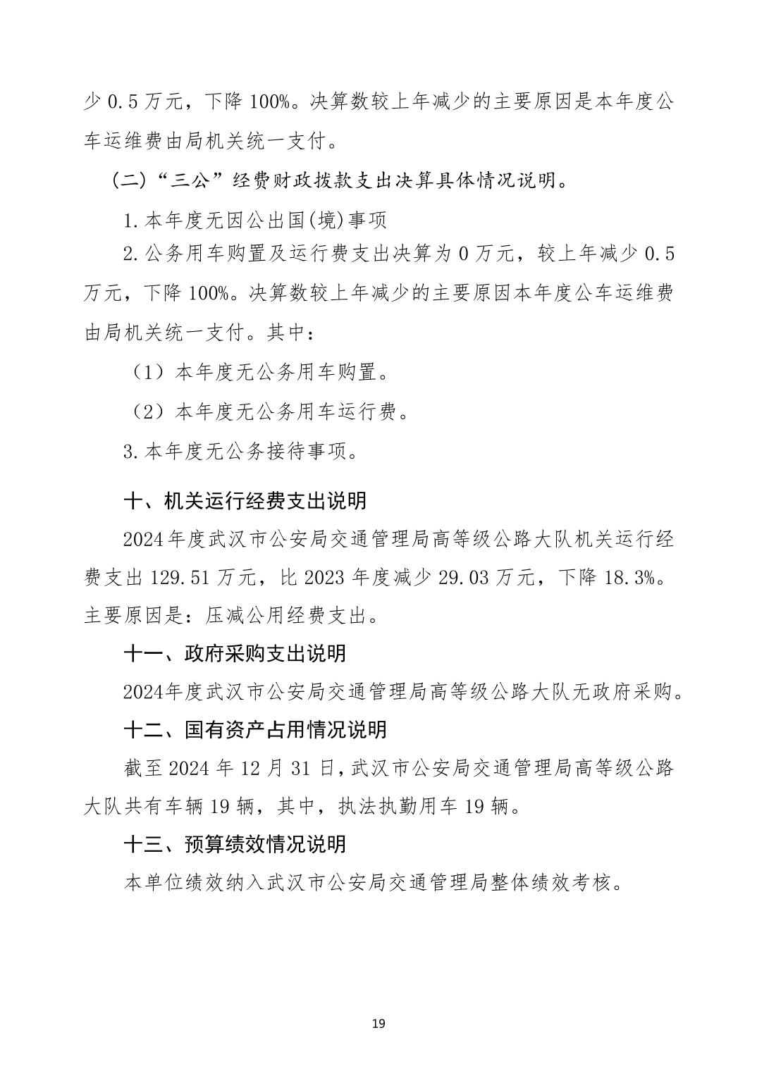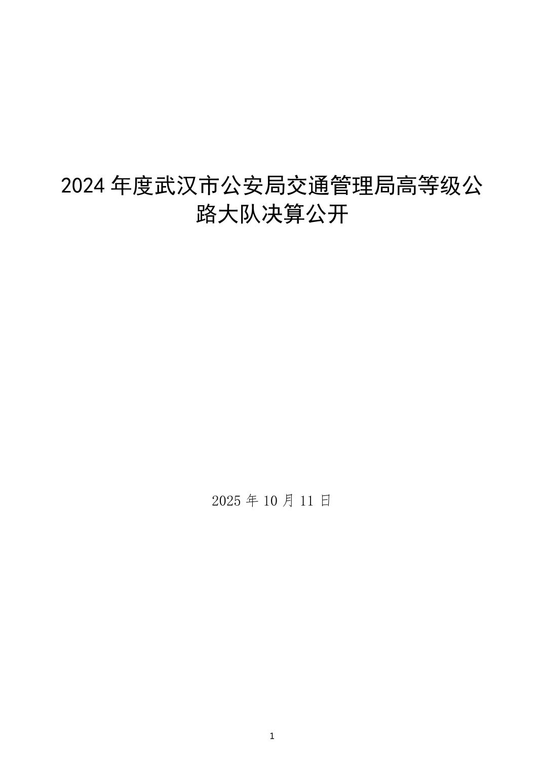武汉市公安局交通管理局高等级公路大队2024年度决算公开
