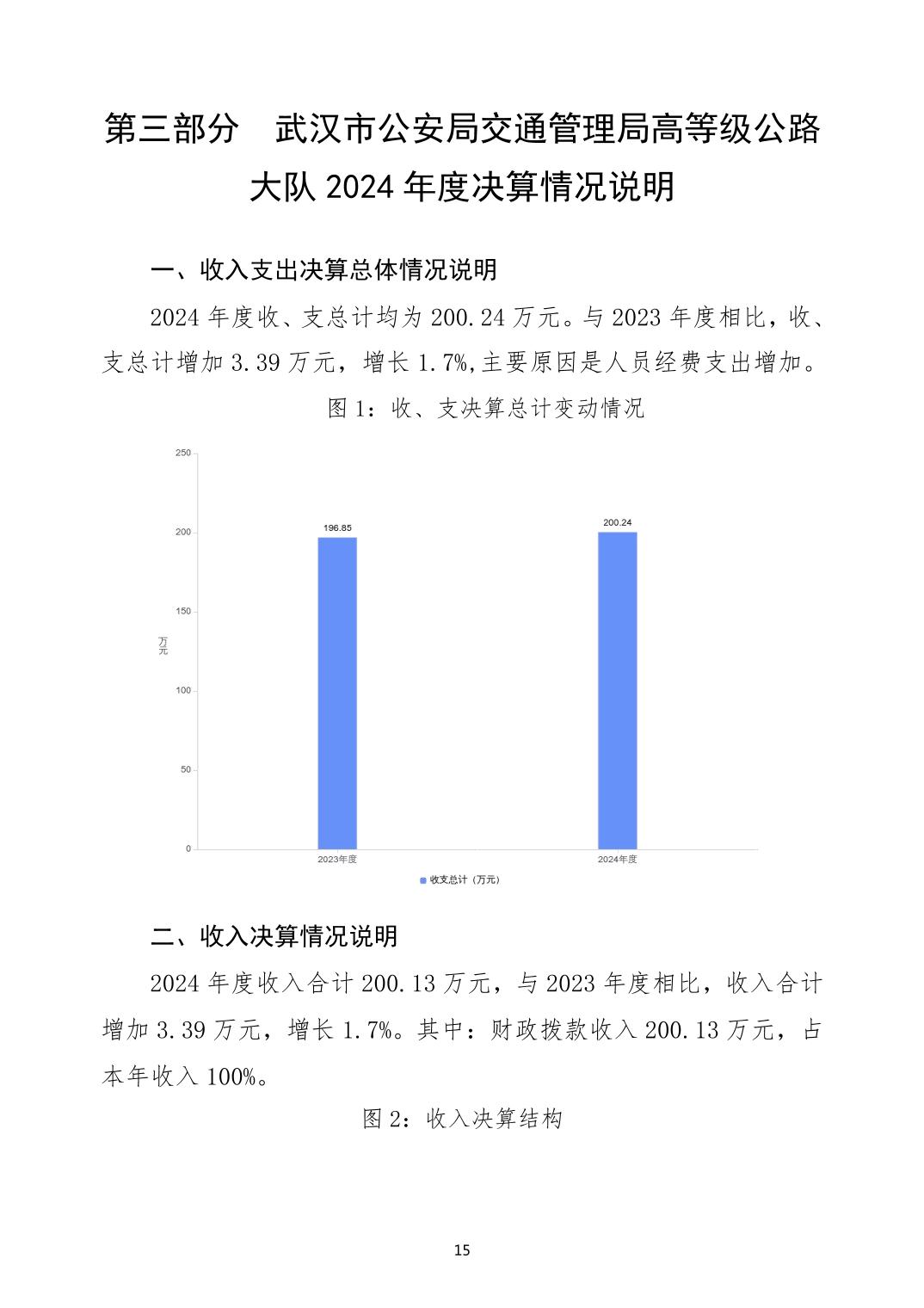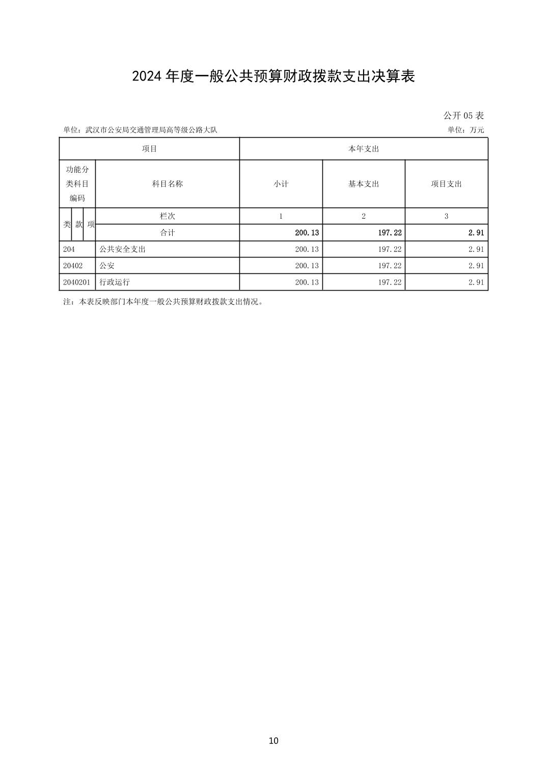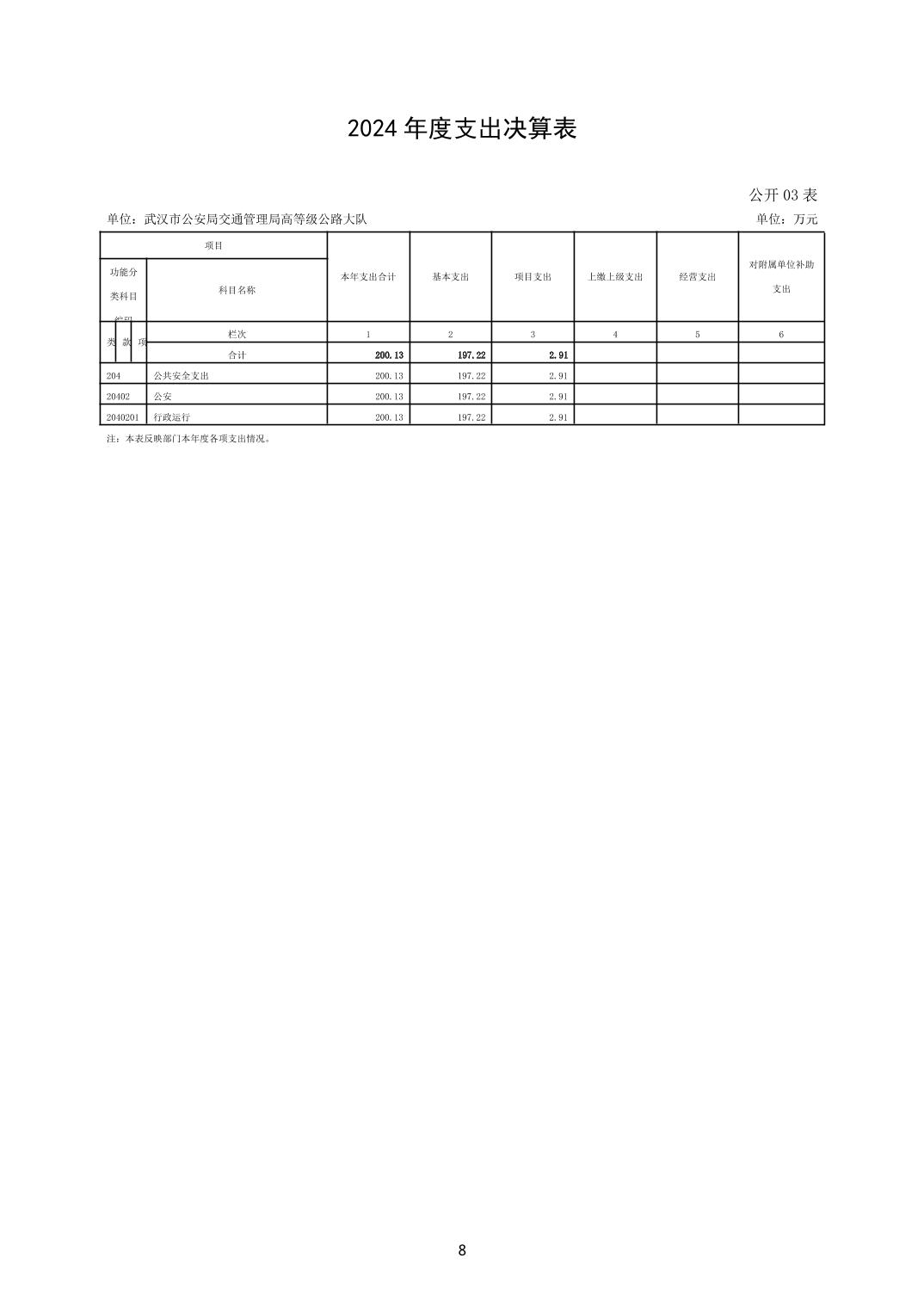 武汉市公安局交通管理局高等级公路大队2024年度决算公开
