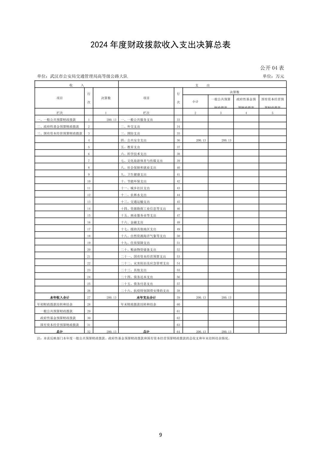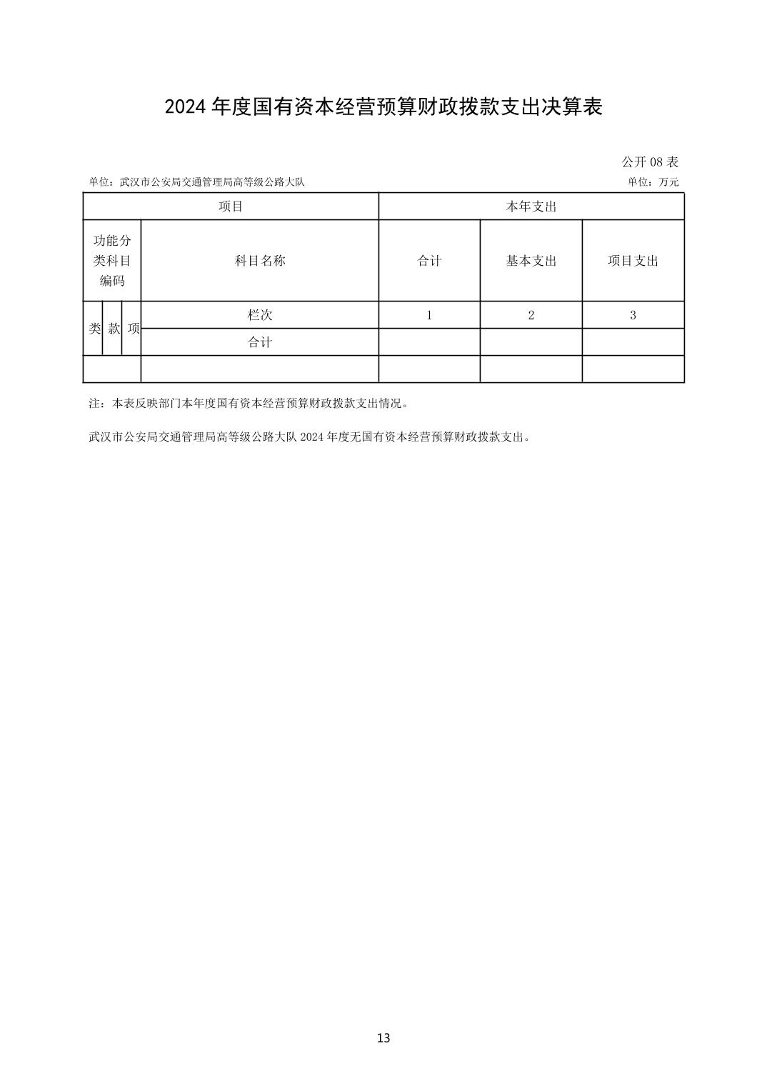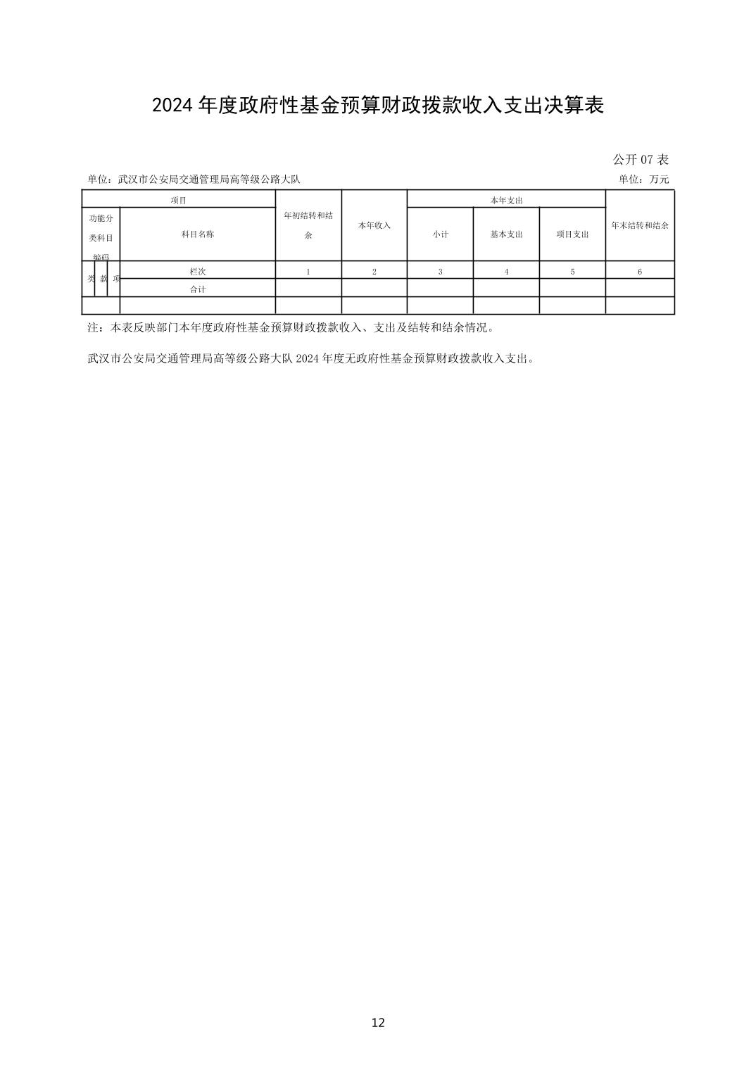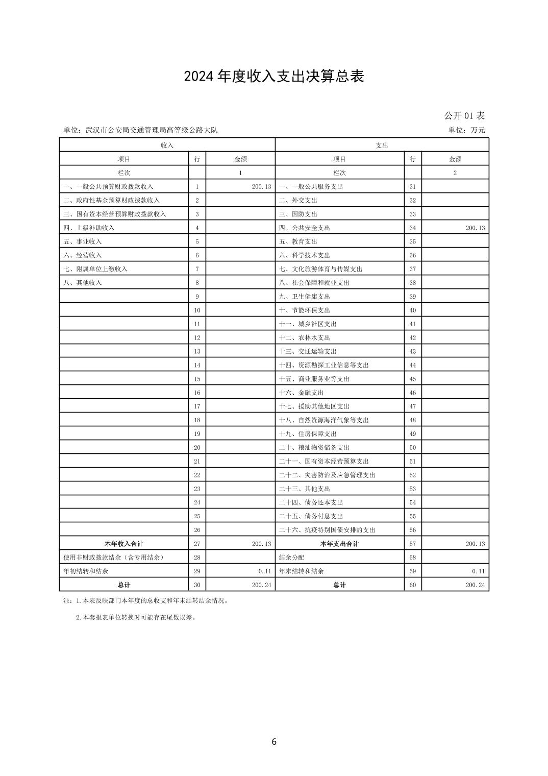 武汉市公安局交通管理局高等级公路大队2024年度决算公开