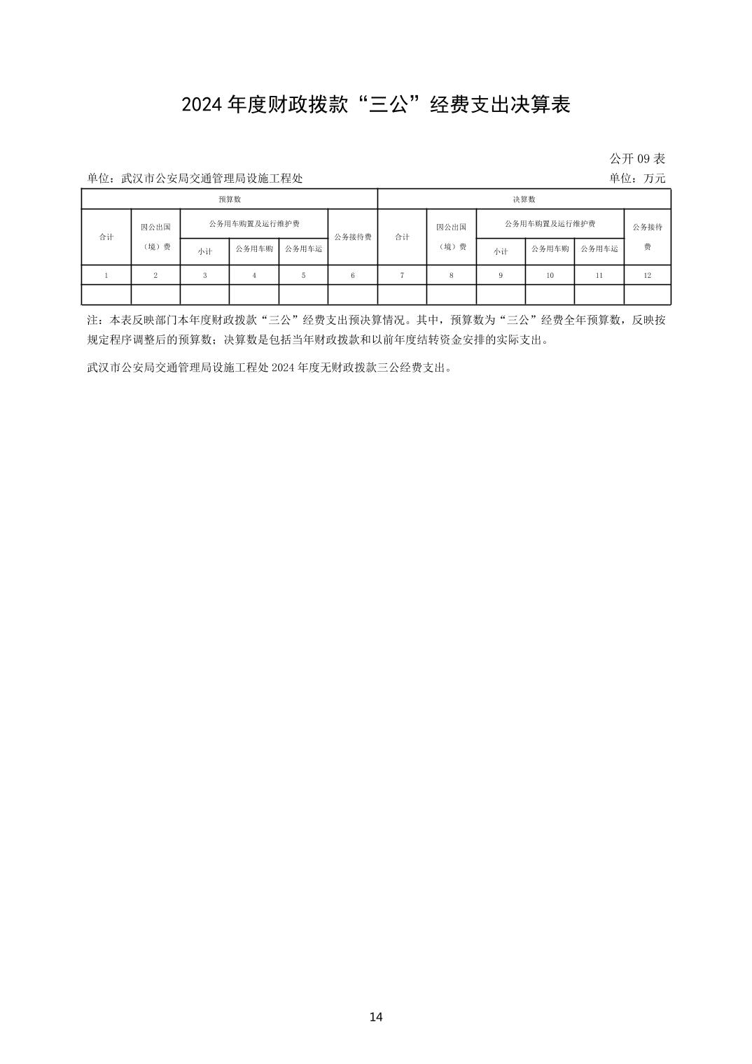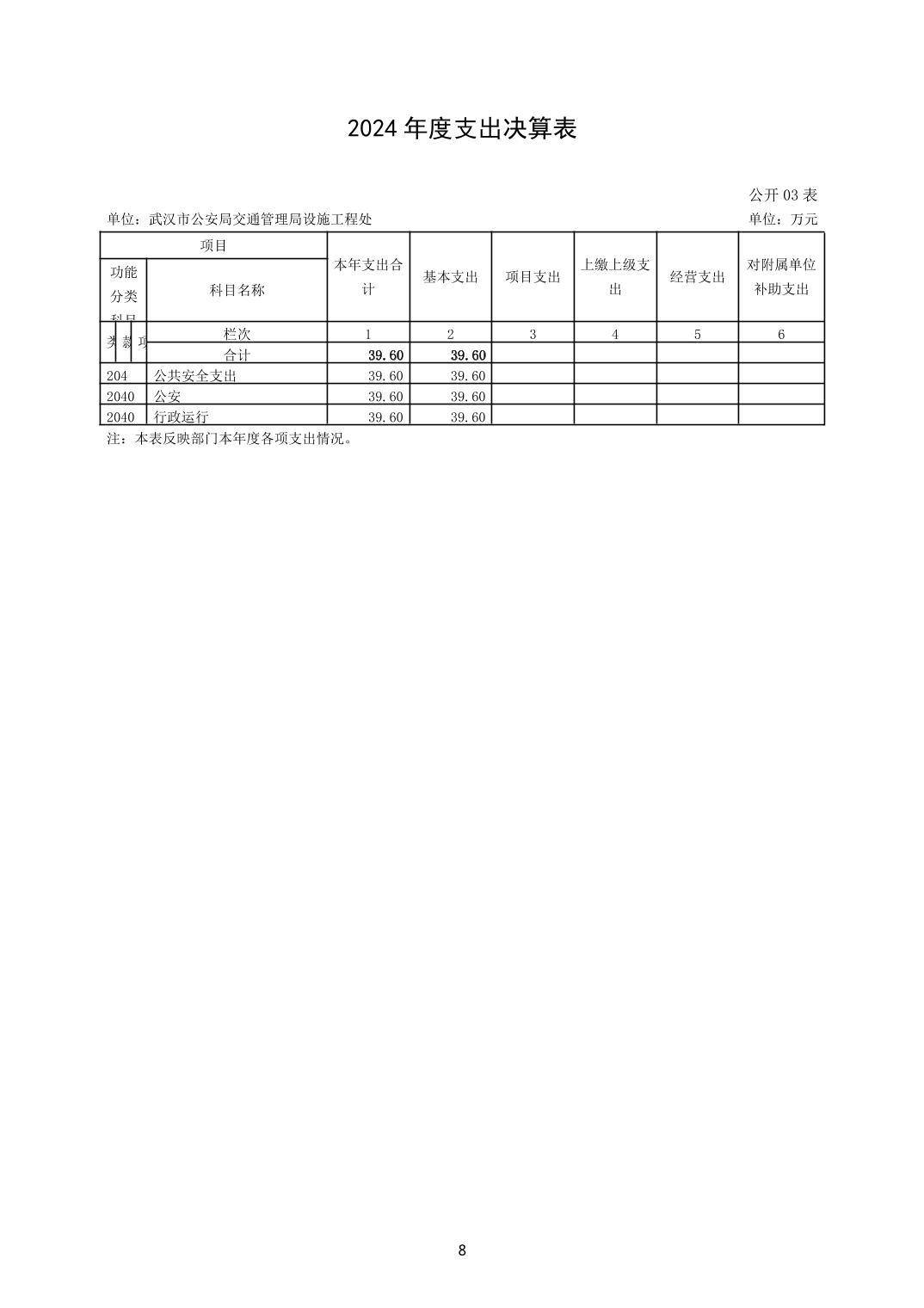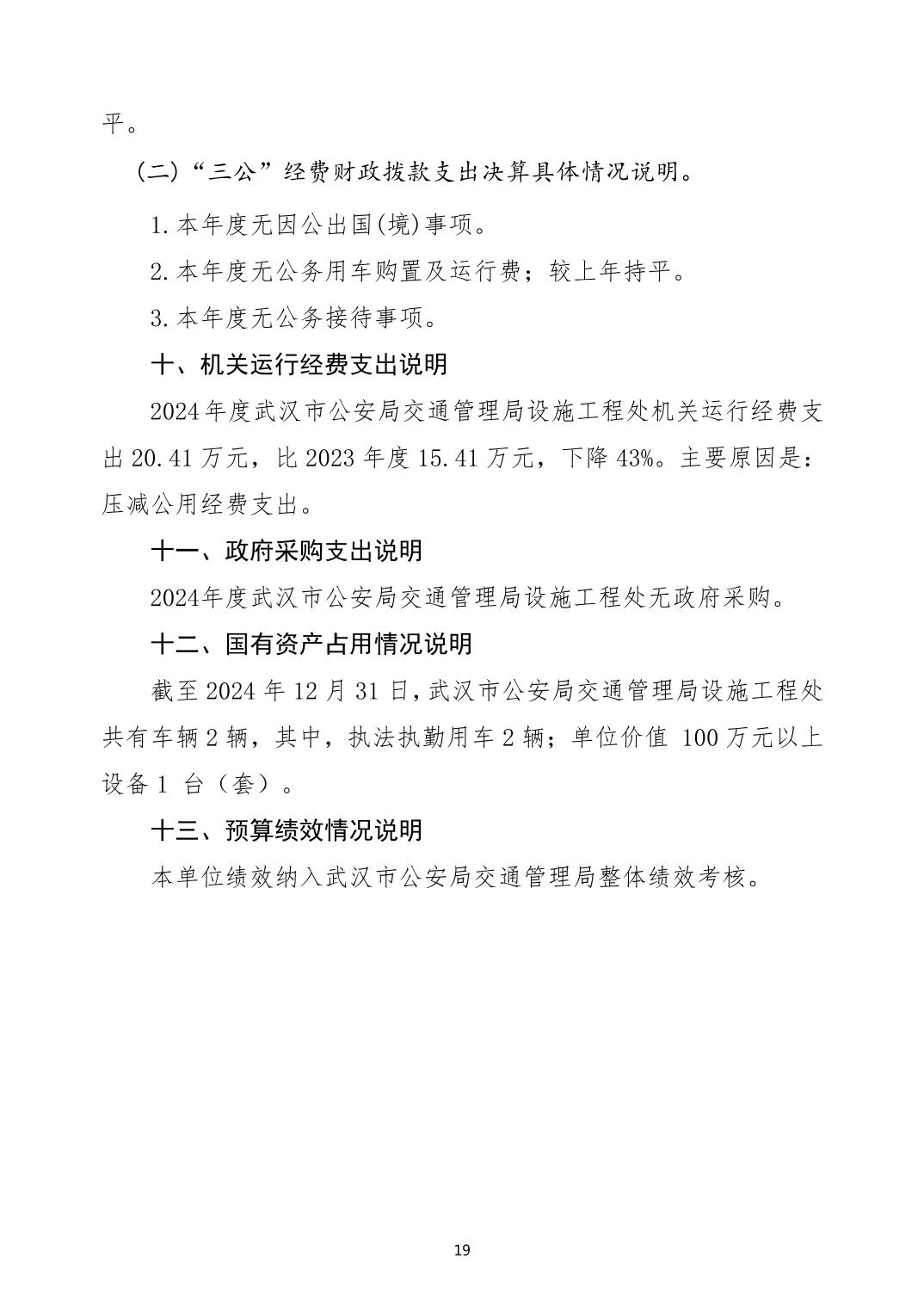武汉市公安局交通管理局设施工程处2024年度决算公开