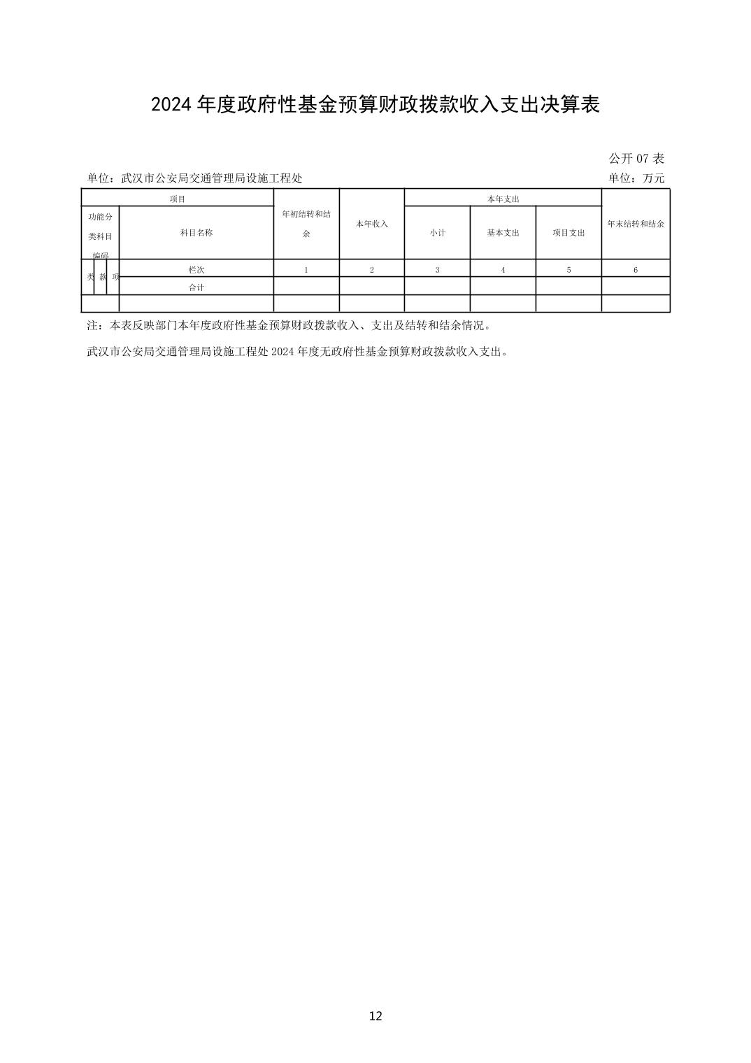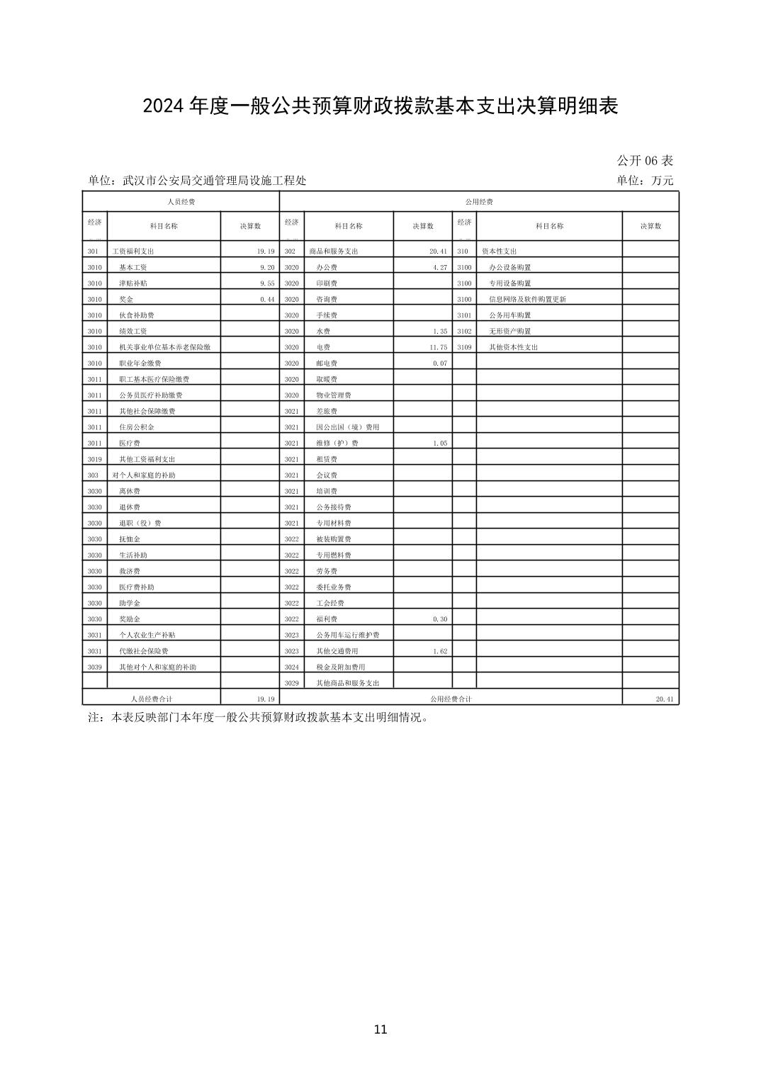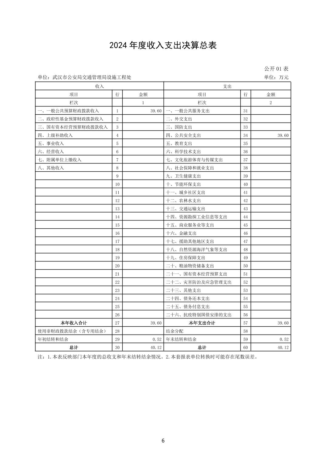武汉市公安局交通管理局设施工程处2024年度决算公开