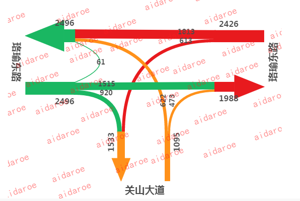 经我局交管部门现场踏勘,关山大道珞喻路路口为丁字路口,位于华中科技大学南一门前,机动车、非机动车和行人流量均较大,且周边公共交通站点众多,是该路段重要换乘节点,目前设置有地铁2号线华中科技大学站、有轨电车L1路华中大站、珞喻路关山口站(途径线路共21条),机动车总流量6017PCU/小时,主要流量为东西向直行流量,约占路口总流量的55%。